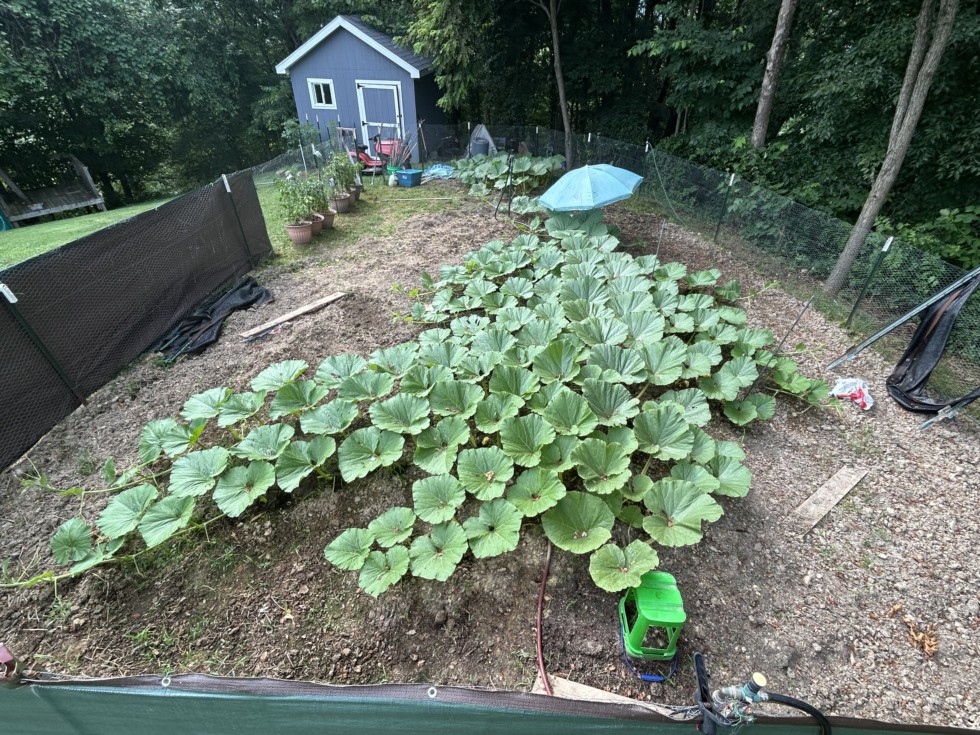 Still just slow and steady, this plant is not aggressive. Pollination attempt in the morning that I hope will be my keeper. With any luck the slow and steady will translate to 40 days of 40 plus pounds pumpkin growth.