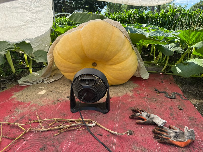 2376 Stelts DAP 20. Removed the blossom last week. Felt softish and not chancing it going into the flesh. Didn't affect the weight or size at all. Measured just .5 under the 2301 but 5 days younger. Absolutely incredible but the highs can get low real fast in my patch at times.