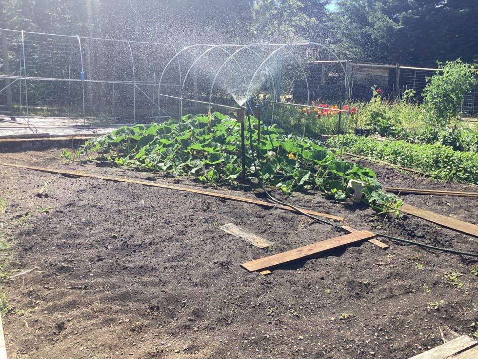 We did a bunch of weeding on one side of the 839 Sandercock plant so that the secondaries have fresh soil to bury into. We will pitchfork and weed the other side tomorrow, there is a pumpkin set on the main and and I've begun bending the main away to one side.