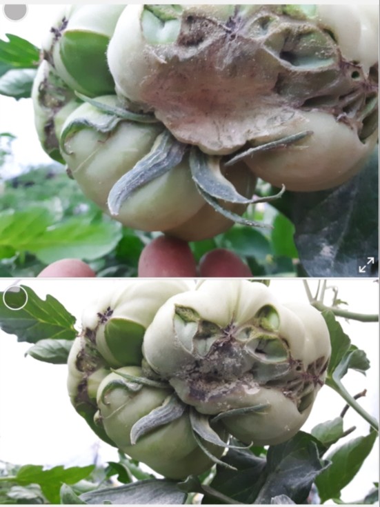 I think the tomato, bottom, might have healed. But the BER is dead tomato. You cant leave much of a layer of dead tomato or the live tomato will get infected by a secondary rot. So I redid the surgery. Probably lost a few ounces. I'm hoping I can get this one to 8 lbs. Better than losing the whole tomato.
