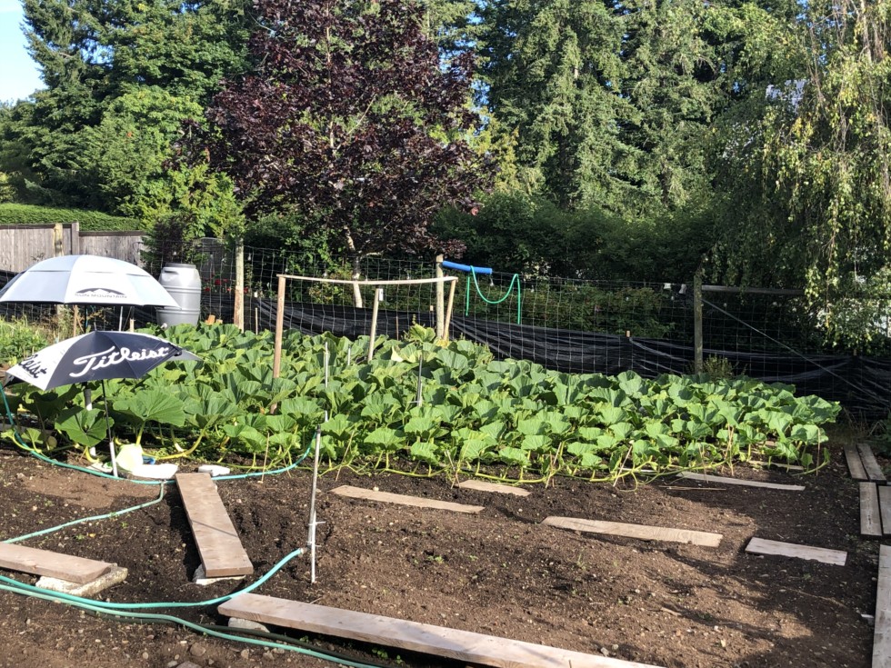 2404 plant continues to grow and it looks like both pollinations were successful. First set pumpkin is at 19 feet on the main and has the better vine position, won't be long until I delete the backup fruit.
