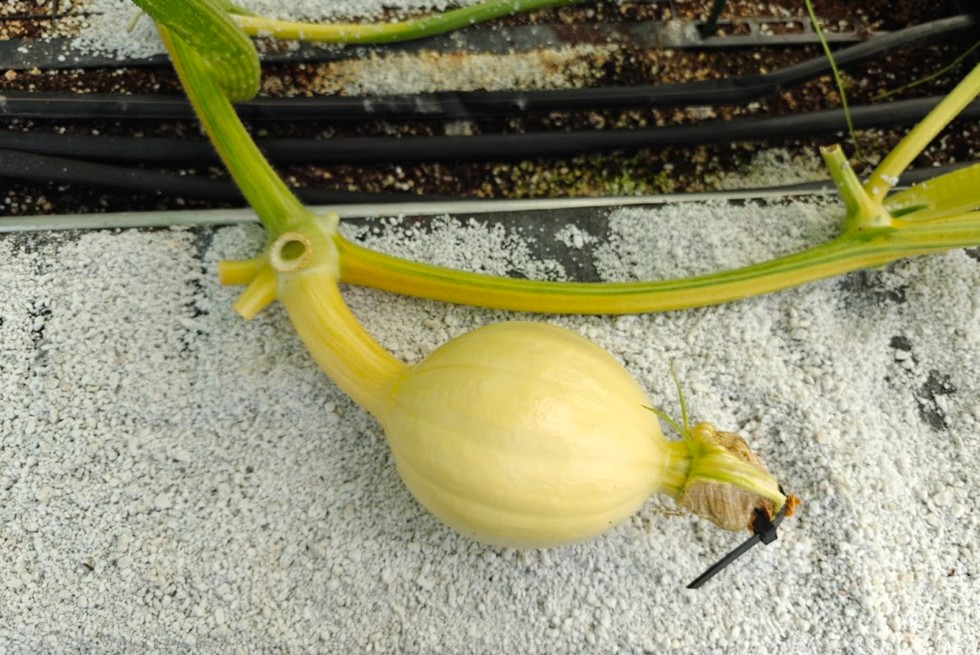 This was pollinated 5 days ago at 18ft, it was perpendicular to the vine and in a perfect position... now it's decided to head 90 degrees left...!?! I foresee some tricky maneuvering to do in the coming weeks to get it back on track