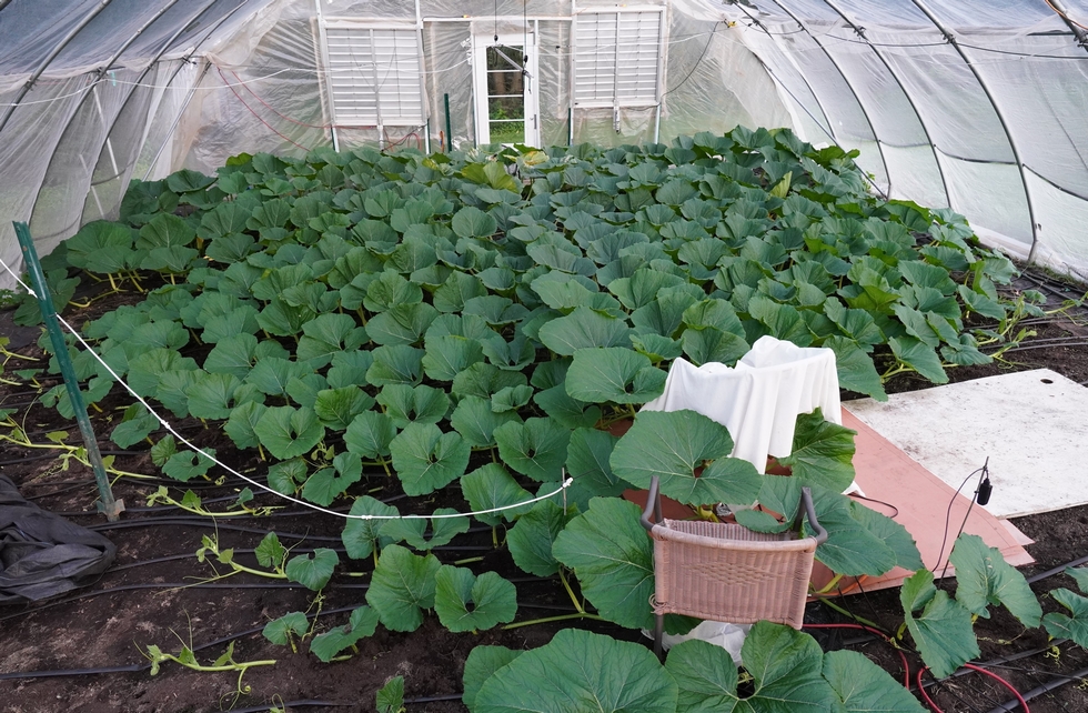Supplementing with CO2 helps all aspects of the plant growth, but through research on pumpkins myself the carbon dioxide supplementation does not help directly with pumpkin growth only plant growth. This is why the CO2 enrichment is run until the pumpkin is about 20-30 days old to help it fill in the area.