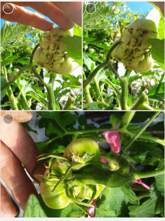 The reason I might not keep the megas on the ribbon vine is this one... Classic 8.68 tomato shape but its on the 2.38 Elaine. Daddy-pollen genetics coming through. This one should be a cake walk to get to a weigh off, although it may have to spend a couple weeks in the refrigerator. The flower bud for this one wasn't too impressive, but now its acting like a keeper.