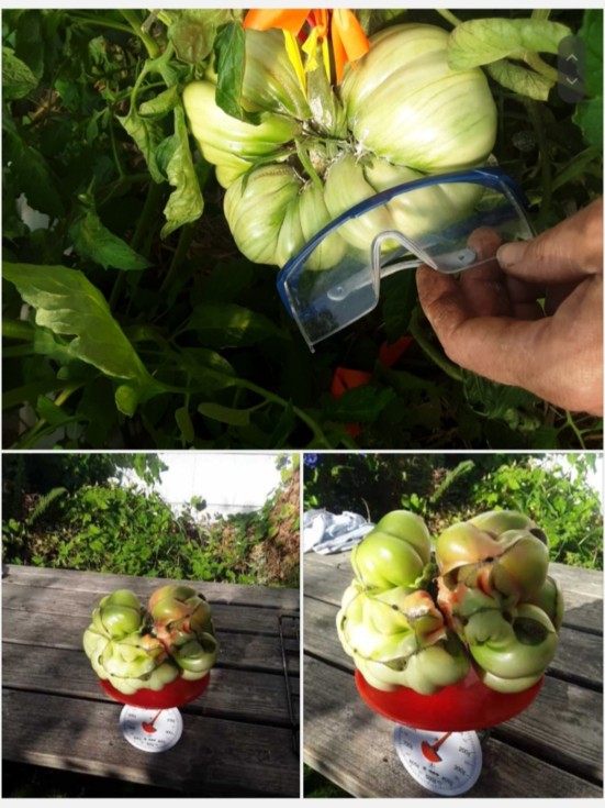 The best tomato on the 3.90 Leurs suffered a detachment. In hindsight a hammock may have helped. Bottom: 5.16 Greene mega #1 is the latest failure it never really took off and is only 3.15 lbs. Lots of nutrient issues. Only a few good tomatoes remain.