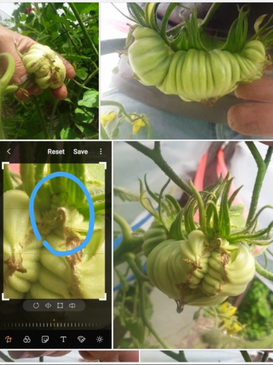 Top left: this one was a nice chunk but I watered in some potassium this morning and sure enough it already has BER. Guessing a lot of growers don't realize how much the combo of water + potassium intereferes with the uptake of calcium. There is another older tomato on this plant which I want to push a bit, hence I added the water and potassium even though I knew this might happen to this nice younger tomato.