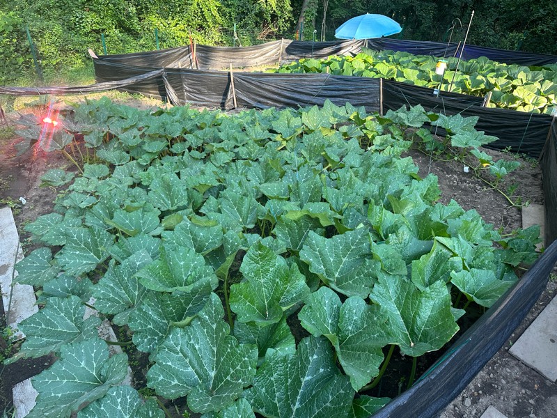 The butternut plant is huge. I've got a lot of male flowers but just not getting anything to time right!
