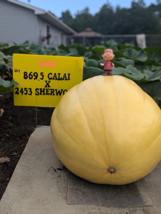 Then we have Luna 869.5 Calai 2000 x 2453 Sherwood 24. This pumpkin is on a split main from a double vine.