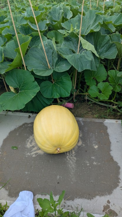 This is an open pollination on a secondary on the stump side of the 2344 it's actually growing well and has a nice shape. Has about 12 secondaries and 10 ft of main vine, which I'm guessing amounts to 400-500sq ft of plant behind it. Not sure what to expect but I'll ride it out as long as I can.
