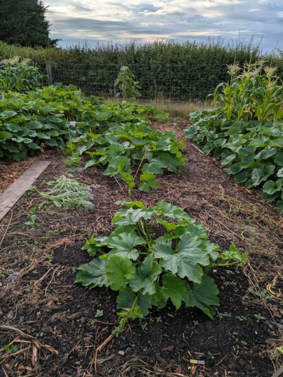 This is my very narrow marrow patch with Queensland blue squash and sweetcorn on either side. The plant in the foreground will be culled today so I will be left with a 102 Hochstetler and a 253 Baggs running back to back.
