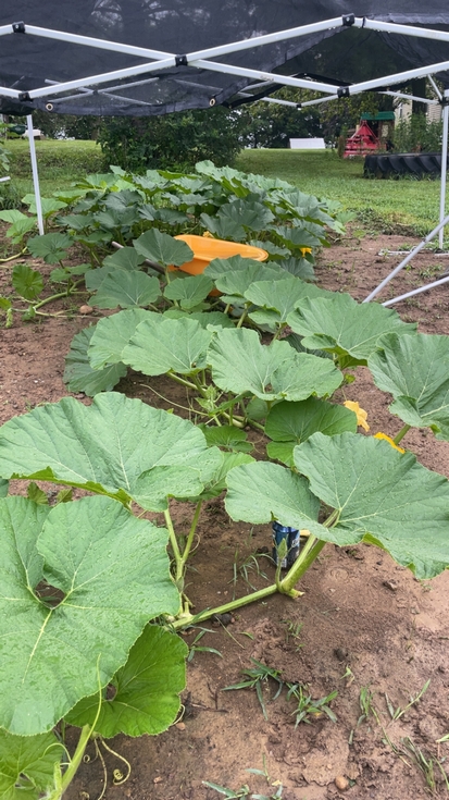 Neither pollinated pumpkins are making much progress. But my plant looks healthy! I feel like I could still get a 200lb pumpkin by October, so I'm disappointed but not throwing in the towel.