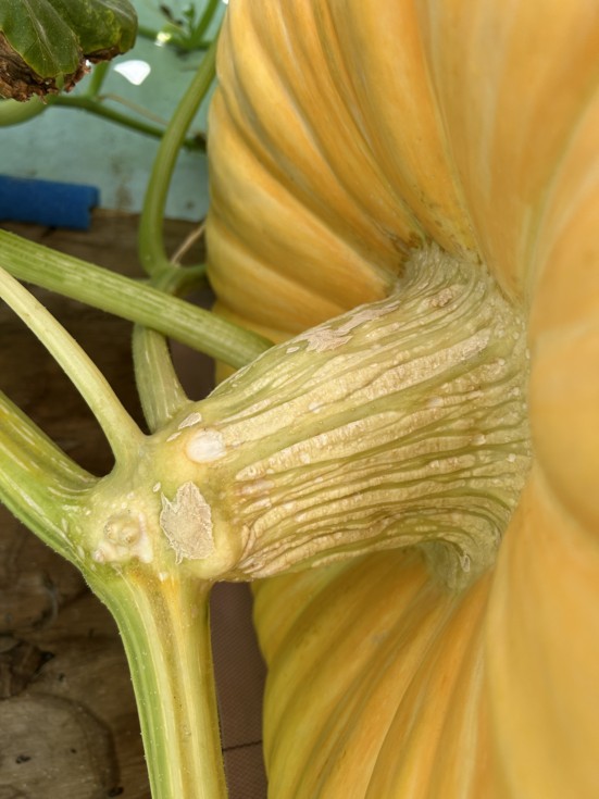 Any thoughts on these white spots on my pumpkins stem? Specifically The circular ones near the vine. They are slightly depressed and relatively firm and dry. I sprayed the area with peroxide twice over the past few weeks so maybe its from that?