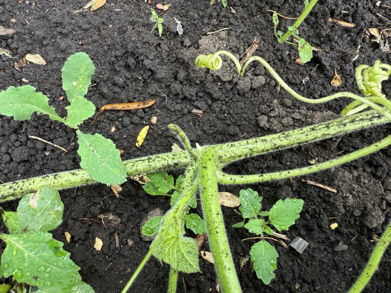 In case anyone was wondering, long gourd vines running on soil will form roots.