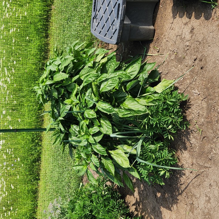My seeded green peppers have hung in there through blistering heat.