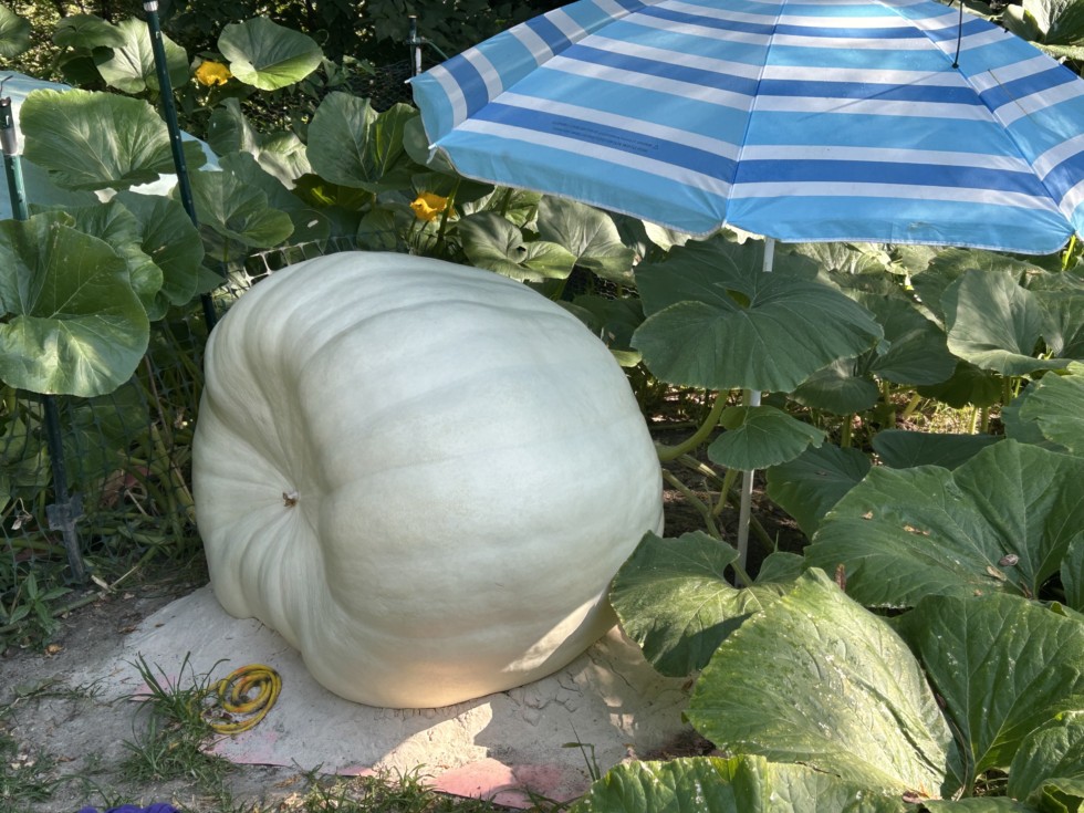 Dap 40 estimates around 591lbs, this pumpkin is growing six leaf nodes past a main vine split that I let heal over I knew it was a gamble at the time and I certainly believe it has contributed to the low and slow daily gains. It's a beautiful pumpkin however and I still get excited every day I pull the sheet off.