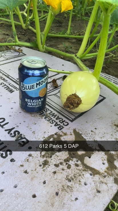 612 Parks 5 DAP. There were 2 pumpkins pollinated one day apart and I kept them both for a few days but ultimately kept this one. It's growing faster since the removal of the other one.