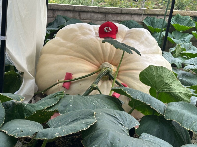The 2144 Barron is growing well, although not spectacular. It's rolled over and the only way I can see the blossom end is to stick my cell phone underneath. I love the shape for going heavy. OTT is 365 inches. Day 60 today 37 days to go until the Weigh Off.
