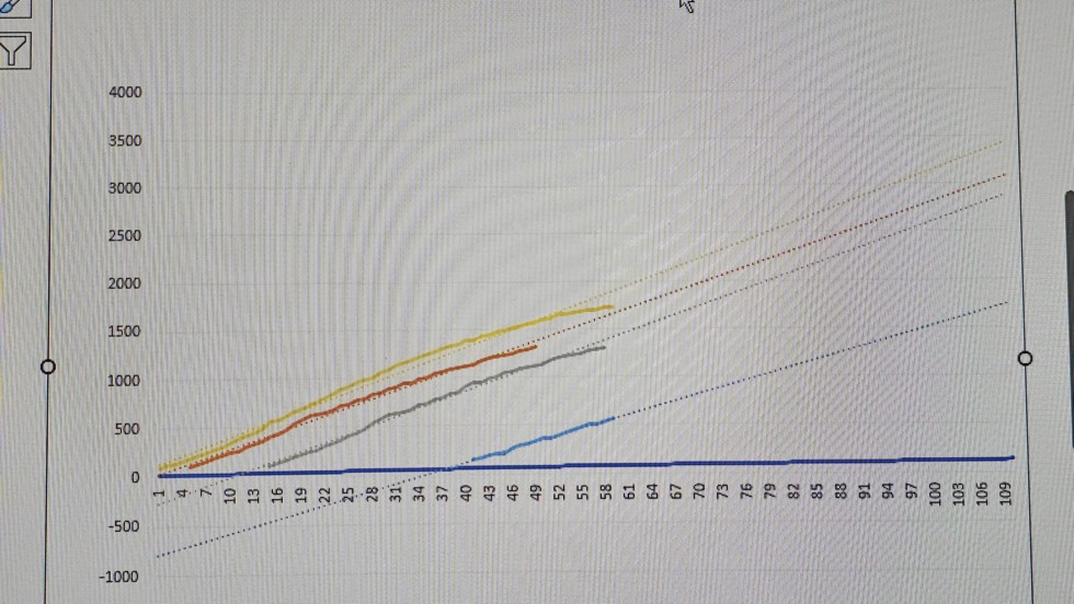 This is a weight graph of all 4 Barron 2144's I've grown. All of them have a relatively flat line growth curve. Not conducive to PB's.