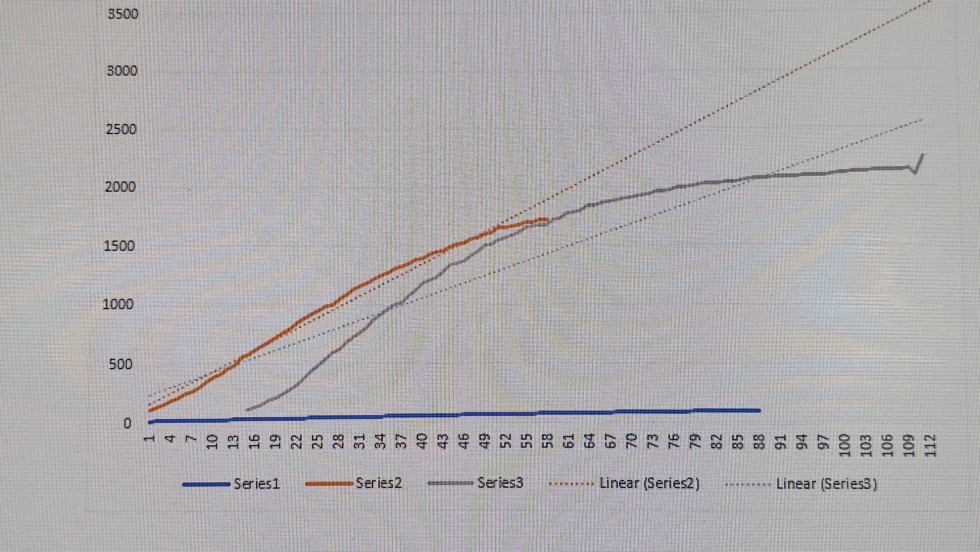 The long grey line is last year's 2252.5. The orange line is this year's 2144 that started early but never hit the super big growth period and flattened off early....a little disappointing. With 3 still on the go, we're hoping to top 4300 lbs to get Janet a jacket.