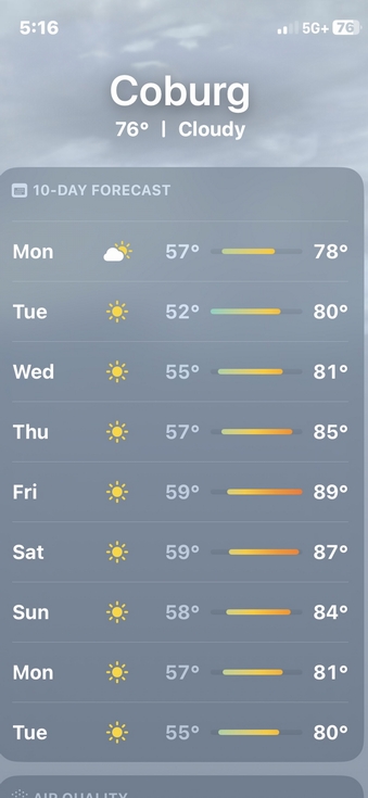 Looks like we have ten days of perfect weather coming up. All I ask for is three more inches a day. Surely that is not too much to ask, is it?