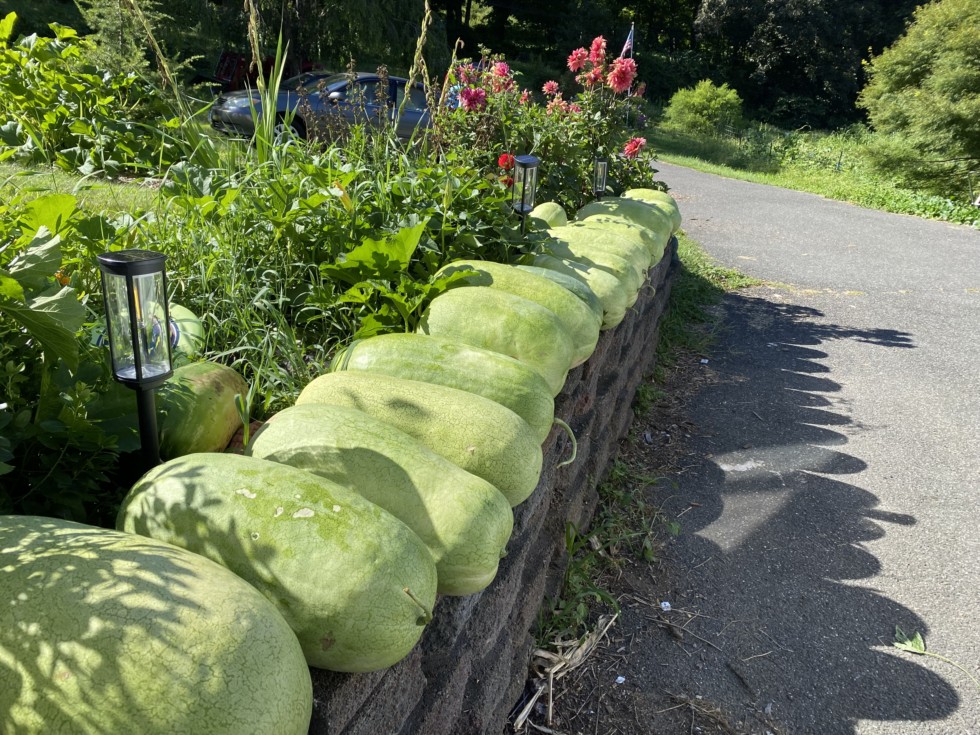 Charleston gray watermelon, these are much less prone to sunscald. Not immune though. I had a few with it!