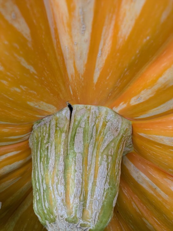 I made the requisite incisions and the split hasn't progressed into the fruit any more that I can tell. I'll do my best to save it. It is still putting on 18 lbs./day at this point.