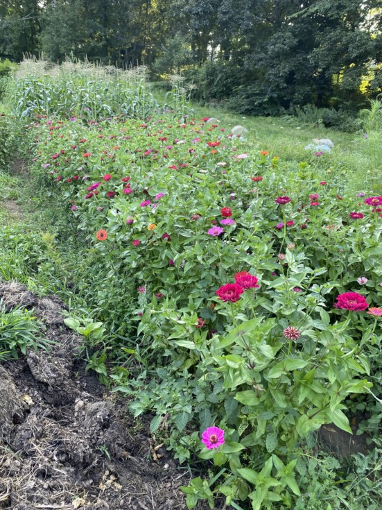 I planted a few rows of zinnias this his year. They make a long lasting cut flower