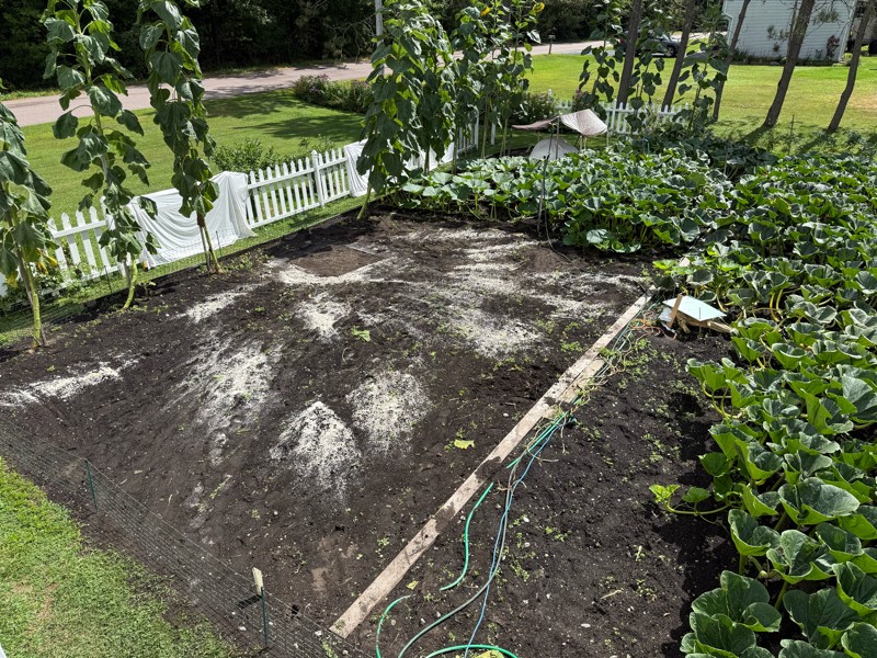 We cleaned up Acacia's (1503 Young x 1552 Young) plant area today. She will just keep her estimated weight of 1140 pound with an OTT of 367 inches. Amazing how much plant material is in 600 square feet. We are both pooped but she is in the compost. It looks like we got great seeds from her but we will know better once they are fully dried.
