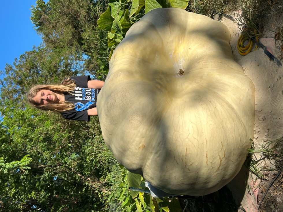 I've lost my pumpkin, nothing yet that would DQ her but she's developed some soft spot on both ends and no longer gaining inches. I'll keep her on vine until the wife decorates for fall and if she survives the trip around front she'll be on display till she rots. Estimating 771lbs.