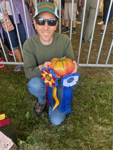 Here is Matt D. showing off my tomato at the Woodstock Fair!