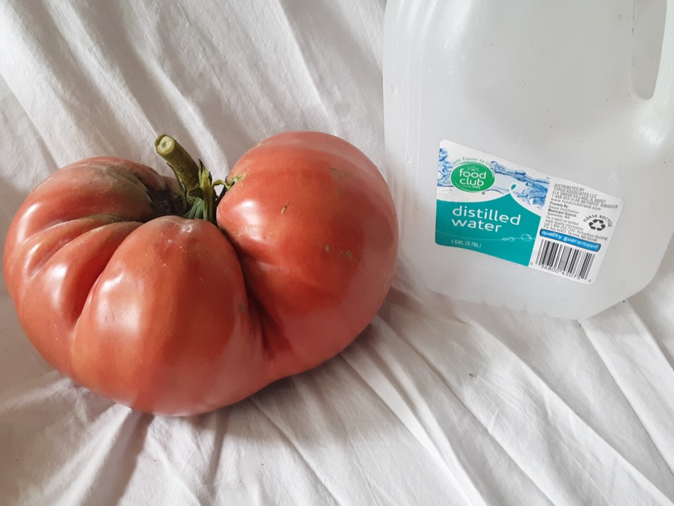 Tomato pic. Jack's was nicer and a little bigger. But not bad. There's another tomato on the same plant but I'll let it grow for at least 2 more weeks.