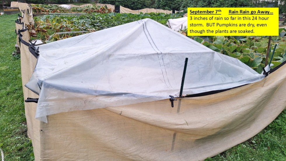 I am waiting it out, for this 24 hour rain storm to pass. 3 inches of rain so far. 6 more hours of rain forcasted. But at least I am keeping the pumpkins dry.