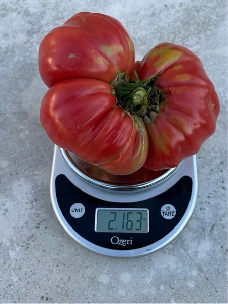 My remaining tomatoes seem to be blushing in between local weigh-offs. So, I am weighing this one at home for the team tomato contest.