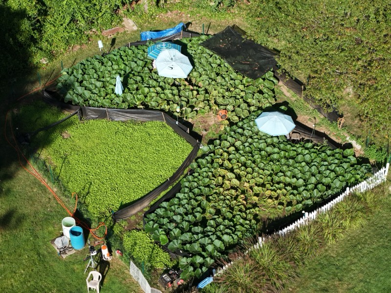 Drone shot of the patch. The best plants I've had for this late in the season but they are also the youngest. The mustard is coming in well!