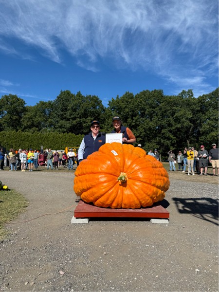 It was a beautiful day today at the Vermont State weighoff. Maggie (1552 Young x 1503 Young came in 4th place weighing 1377 pounds. We also came in second place for tomatoes with a 5.64 pounder. Thanks to Sam Mazza's Farm Market for hosting and all of the volunteers that made it a safe and fun weighoff.