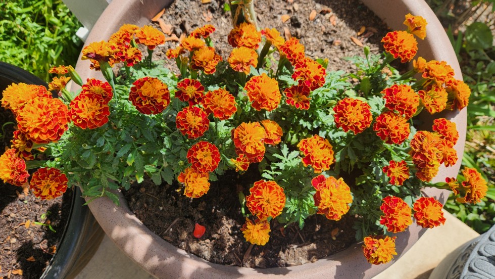 My showy french Dwarf marigolds. This year has been so hot and dry. I mostly planted from seeds to save costs and it paid me back so many times in beautiful flowers and tons of produce for the winter months ahead!