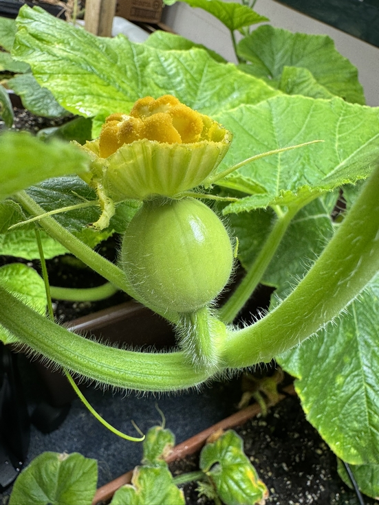 So, I'm at it again.. Experimenting with my indoor cutting clones. Decided to try and pollinated a giant squash to see if I can keep it going, indoors, on very low nutrition and less than idea conditions. This is the 1844.5 Holub 2016, and I pollinated it with 3 male flowers from my 1885.5 Werner 2019. Yes a hybrid cross, but a fun project!