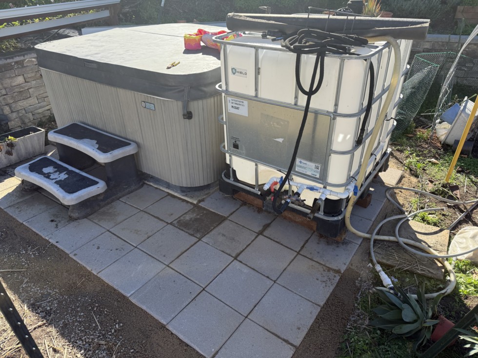 As the season is fast approaching and sunshine has arrived, the pre season projects must commence. First project was to get my tank out of the dirt and on dry ground. My wife liked it so much I made a second trip to Home Depot and added more pavers around the jacuzzi. She's gotta be happy too, I've been told.