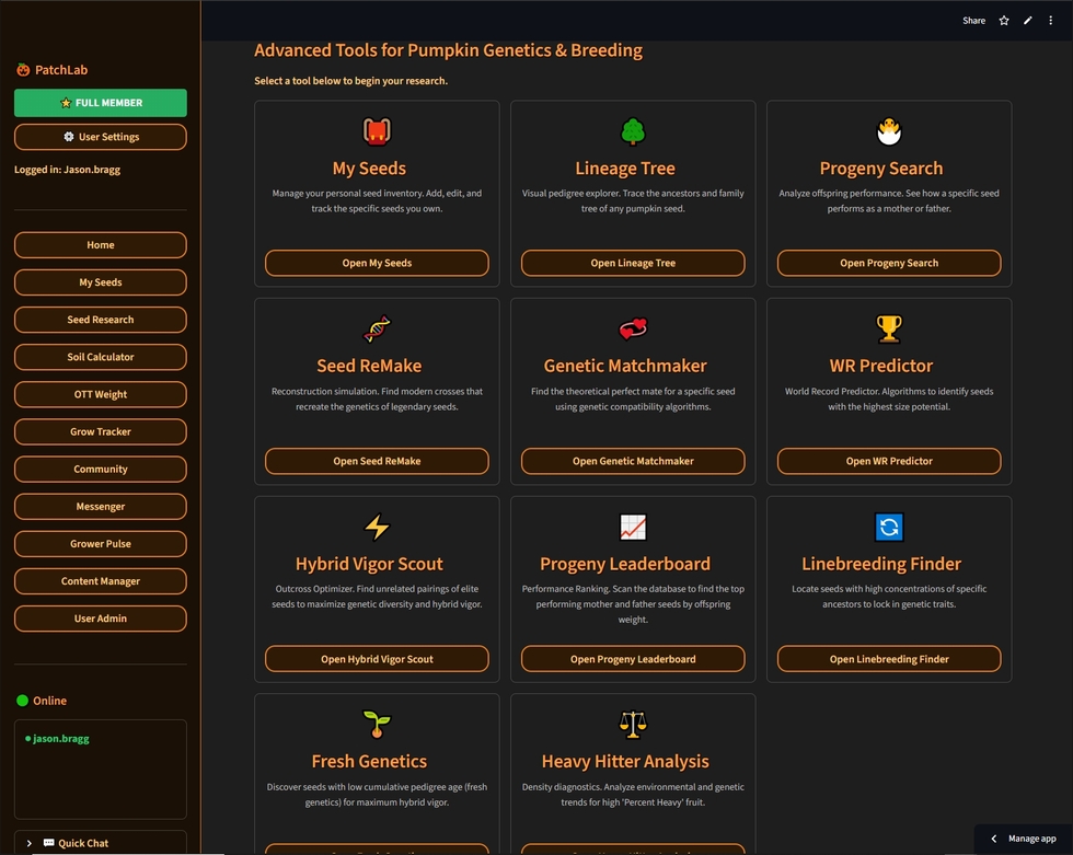 I've been quiet for a few days, lol.. Since the really bad weather has set in I've mostly just been working on my Web App. I designed it for my own use in AG seed research and grow tracking. So I would have something to use in the patch on my phone or tablet. Then some friends got interested in it. Then it started growing. Now it's turned into a full blown web app. If anyone is interested in checking it out, the web address is https://patchlab.app - It's Free! - I'm open to suggestions or comments on things to change or add to make it better. Currently it already has several very complicated statistic and prediction engines that I've built into it, and also an experimental soil amendment calculator built around AG Grow data. It's on the aggressive side, but I'm using it for my own amendments this year. We'll see how it goes! :) https://patchlab.app