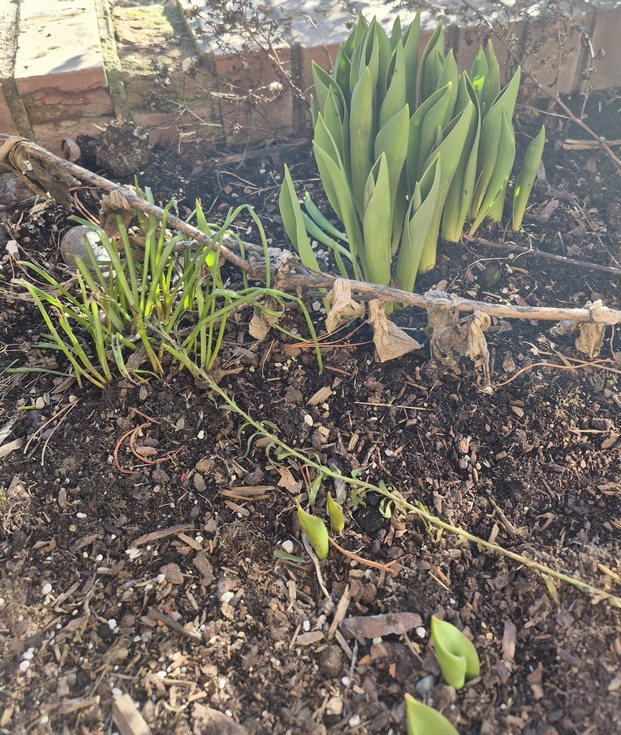 I see some bulbs are sprouting. Very mild winter here this year