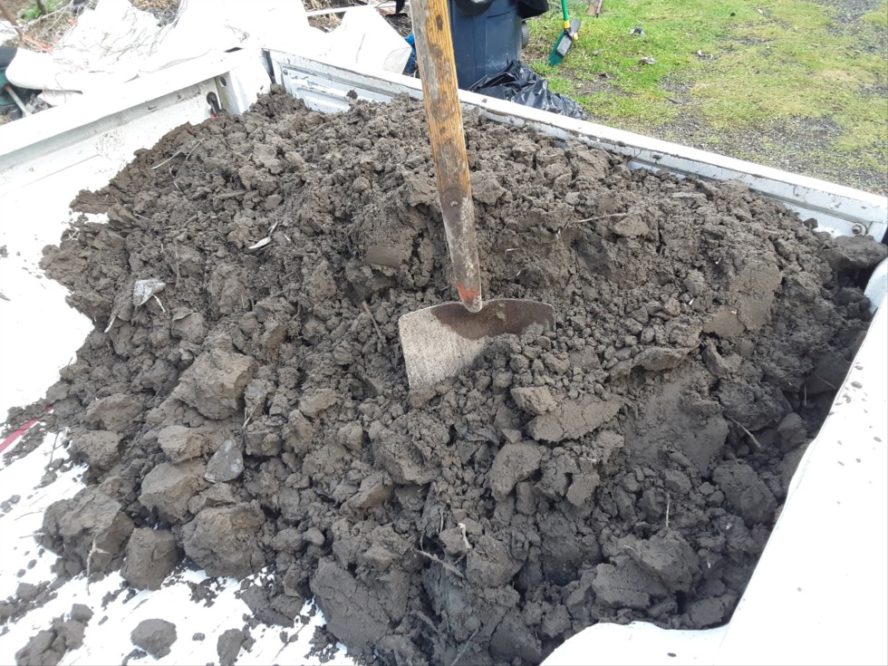 This is some free river sediment from a flooded roadway. I've been adding a few hundred pounds at a time to my patches in the hope of getting better results someday.
