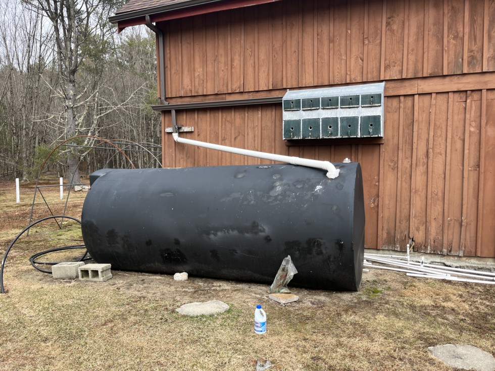 The 1,800 gallon tank has been cleaned, and disinfected with bleach. Hooked up the nylon filter and I am ready to catch the 1.5 plus inches of rain on Monday. It takes about 3 inches of rain to fill the tank.