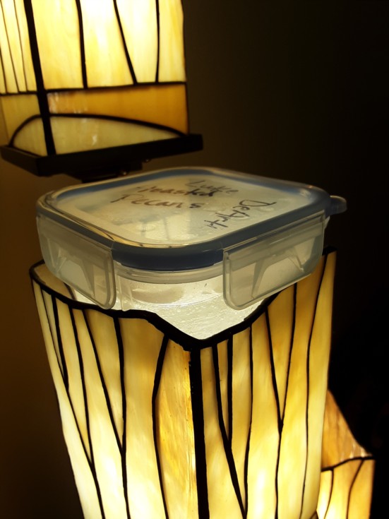 They are atop a light, the container fits just right.