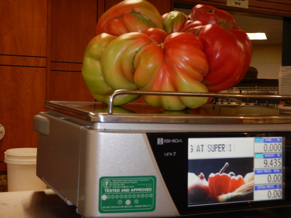 BigPumpkins.com congratulates Dan Sutherland on his 9.44 pound tomato grown in Walla Walla, WA. Dan grew his world record tomato on the 5.95 Konieczny with an unspecified cross.
