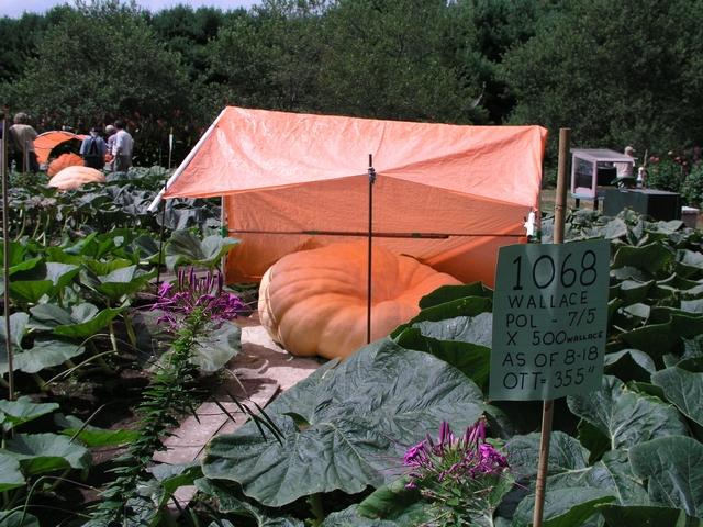 Here is another nice pumpkin in the patch of Ron and Dick Wallace. This is a 1068 Wallace x 500 Wallace. This pumpkin is probably around 800 pounds, right Dick?