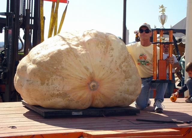 Joel Holland won the Uesugi Farms GPC weigh-off with this 1462 pound pumpkin grown on the 1092 Martin and crossed with the 998 Pukos. Congrats Joel!