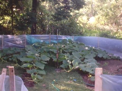 This is how the patch looked on July 10. There are two plants, one behind each visible main vine.