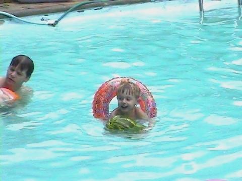 Alex taking a swim with a watermelon that I threw in yelling TORPEDO! LOL