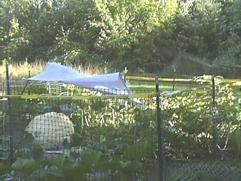 Here we are at 350 lbs. If you notice on the outside poles there are sprinklers going. This works well for watering the plant.