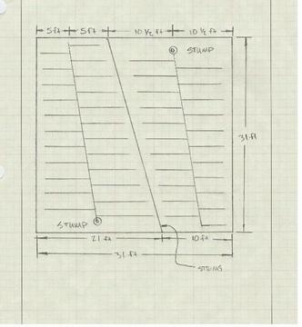 A sketch showing 2 plants, modified Christmas tree style, in 1,000 sq. ft. patch.